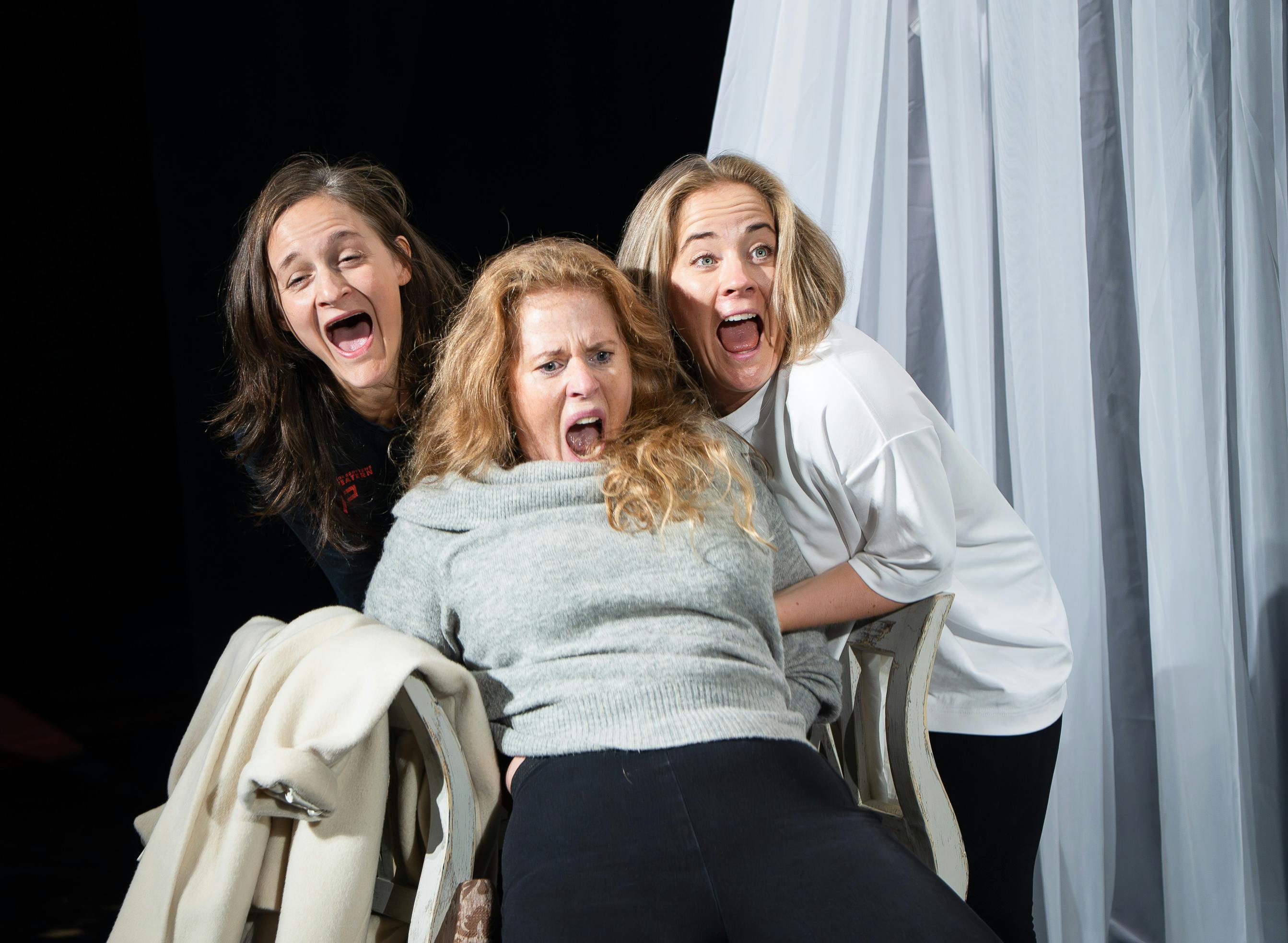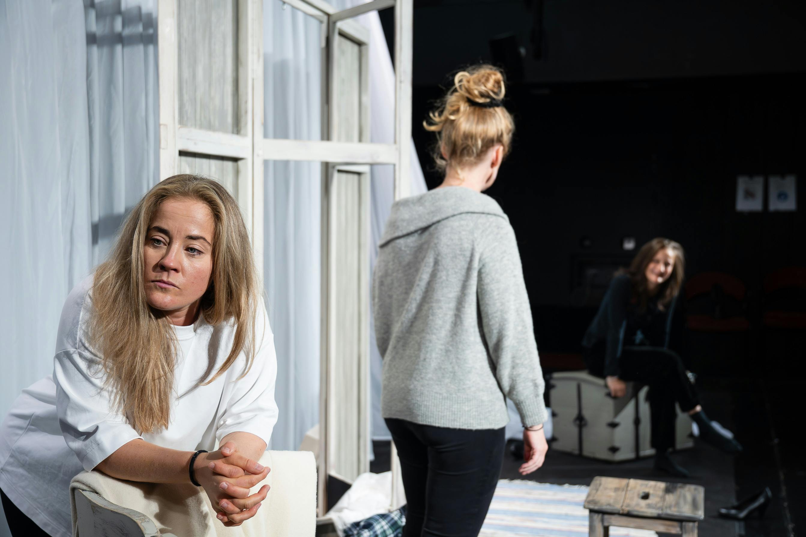 Öppna repetitioner på pjäsen Barndomshemmet. Gunilla Röör regisserar ensemblen (Therése Lindberg, Maja Runeberg och Kristine Gulbrandsen) i denna nya pjäs av Per Sandberg, där syskonrelationer sätts på prov när systrarna Mika, Mona och Maj öppnar dörren till sitt gemensamma barndomshem. Repetitioner med både musik och text.
